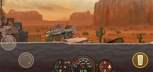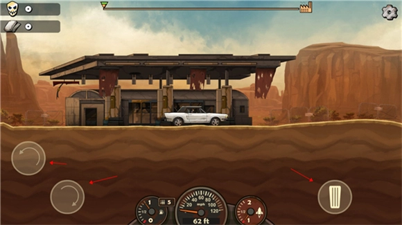 进入关卡后,左侧按钮用于操控车辆前翻与后翘,右侧按钮则负责控制车辆的油门,点击即可让车辆加速前进。