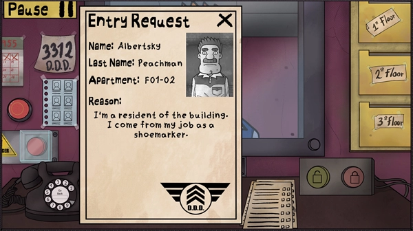 我们接着看第二个彩蛋——在恶魔模式中会出现一个特别的角色,是个戴着面具的幽灵。这个角色的特别之处在于,不管你怎么拒绝他、抓捕他,他下一次依然会出现;就算你放他进大楼,他也还会再来一次。不过,这个角色的出现概率非常低。要是你不巧遇到了他,唯一的解决办法就是连续三次让他进入大楼。等他进去三次后,就会彻底消失了。除此之外没有别的办法,所以这个角色是货真价实的彩蛋角色,他既不会伤害你,也没法被你赶走。