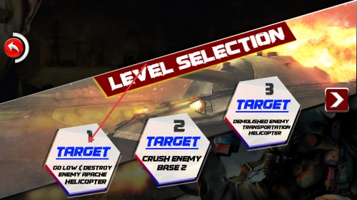 2、在关卡选择界面,挑选【TARGET - 1】关卡,执行摧毁敌方直升机的任务,进而开启战斗流程。