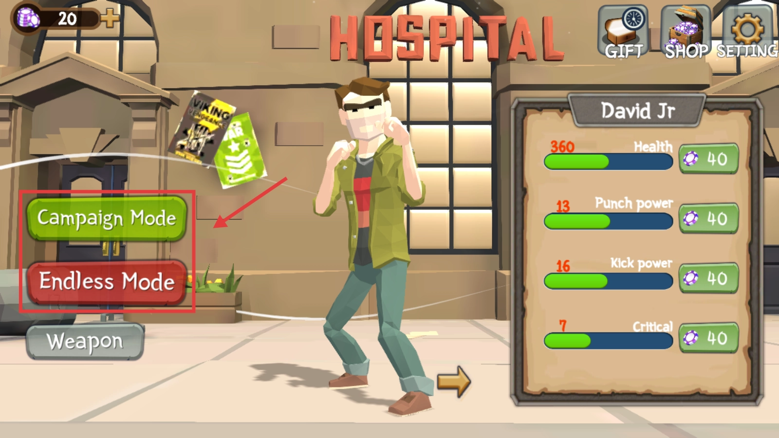 1. 进入游戏后,你可以选择【CampaignMode】开启战役闯关,也能够点击【EndlessMode】挑战无尽格斗,挑选一个你心仪的模式进入游戏吧。