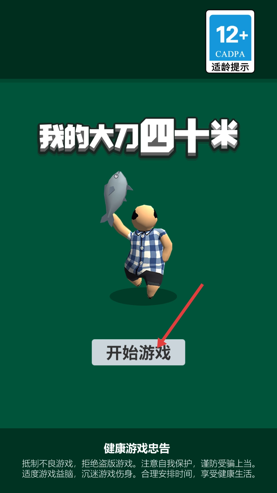 点击【开始游戏】按钮即可进入《我的大刀四十米》,请留意“适龄12+-CADPA”的提示信息,开启你的大刀战斗之旅。