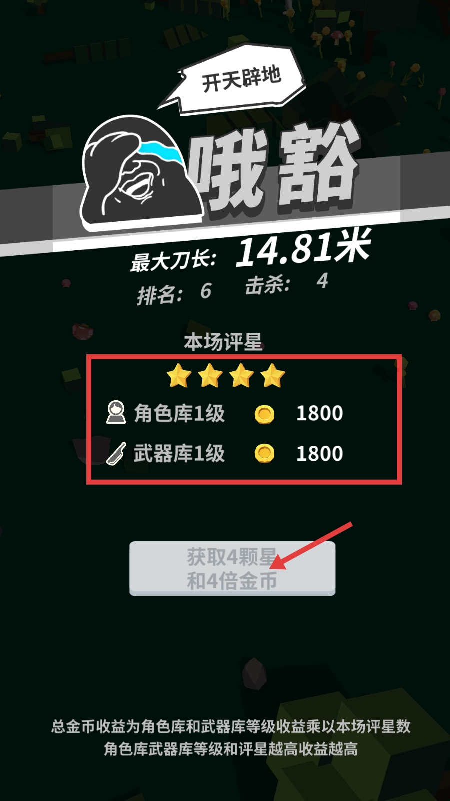 战斗结算时能获取【角色库1级-1800】【武器库1级-1800】的金币,提升库的等级就能增加收益。