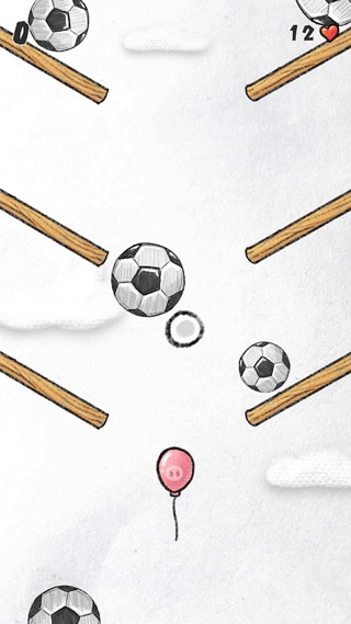 只需左右滑动屏幕操控小球移动,当障碍物朝气球飞来时,需迅速移动小球将其撞开,保证气球安然无恙。