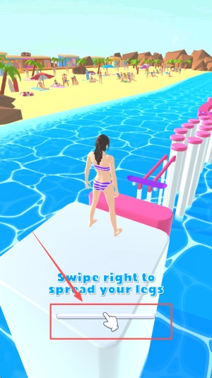 接着,依据提示“wiperight to spread your legs”,向右滑动屏幕使角色双腿分开,为起跳做好准备。