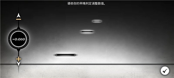 4、通过点击“-”与“+”来实施校正,让拍点在与判定线重合的那一刻精准对准钢琴音;调整结束后,点击右下角的“√”。