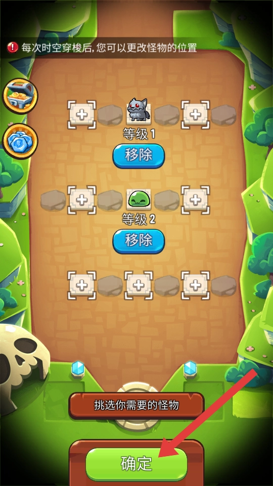 把选好的怪物放到场景里对应的位置后,点击【确定】按钮,确认怪物的布局,就能开启关卡挑战了。