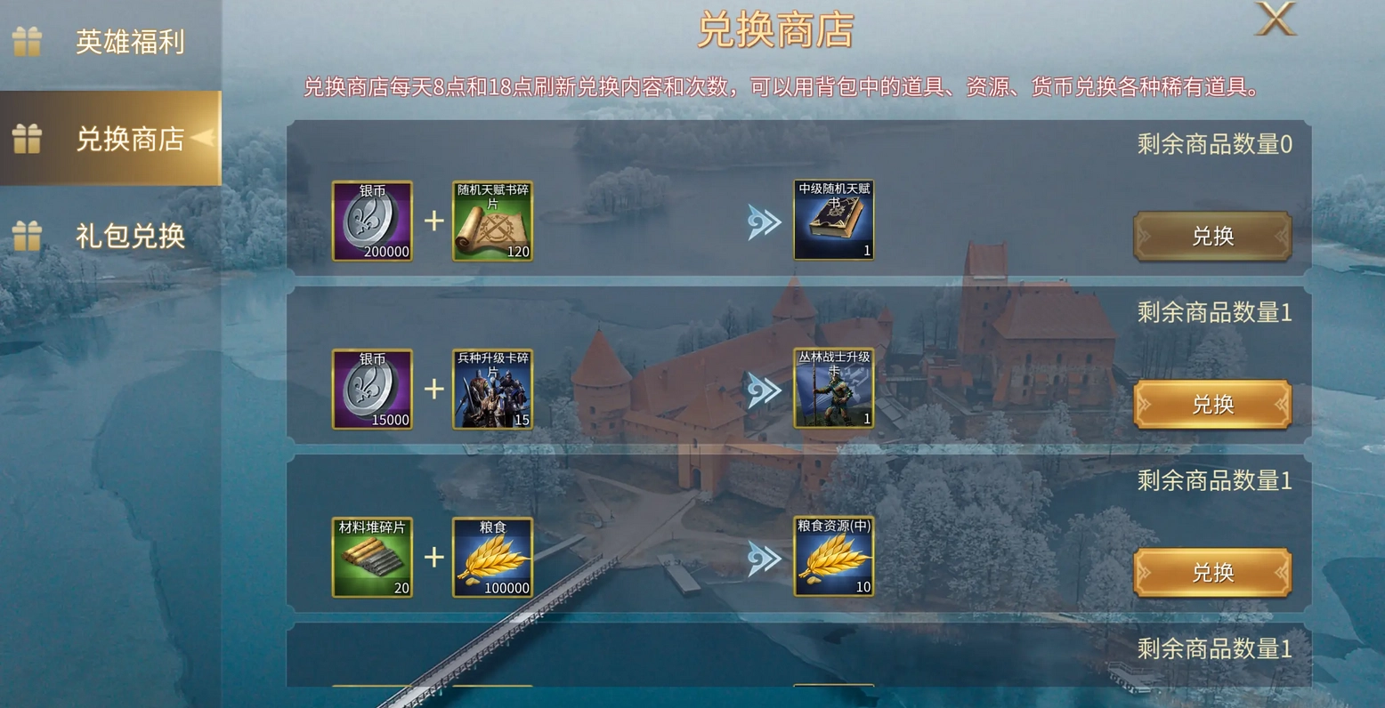 “积少以成多”,除酒馆外,兵种卡还有其他获取途径:兑换商店每日随机刷新两张,遇到适配的务必兑换;主城与分城的兵营升级完成后,会各得一张随机兵种卡,因此城市建设需持续推进;兵种营地可提供固定类型的兵种卡,但最多仅能领取四张;城镇守卫产出随机兵种卡,奇迹守卫则提供固定兵种卡且无获取上限,具备实力的话,每日三次挑战要全部完成;野外建筑(如古堡、行商营地、战争学园)有概率产出自选兵种卡,每天两次的获取机会绝对不能错过。
