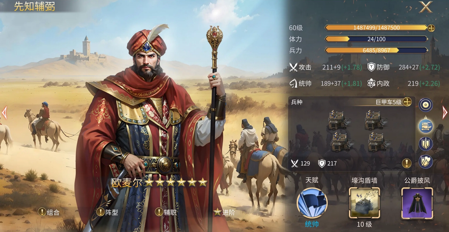 推荐位置方面,通常可置于弓步阵容的前排;其独特定位是空城计阵容的大营;兵种建议选用护卫兵(有概率提升护甲)与苏丹亲兵(有概率提高闪避)。