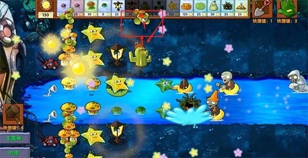 海星射手发射的星星是呈四散状攻击的,而仙人掌杨桃能够助力这些星星折返,朝着僵尸所在的方向发起攻击。
