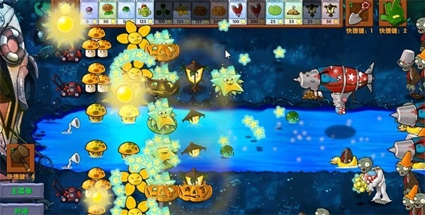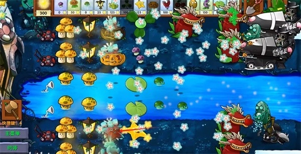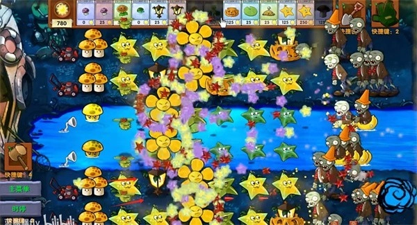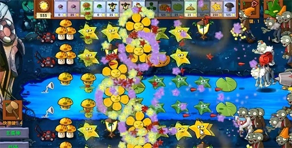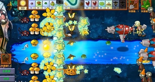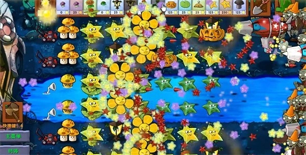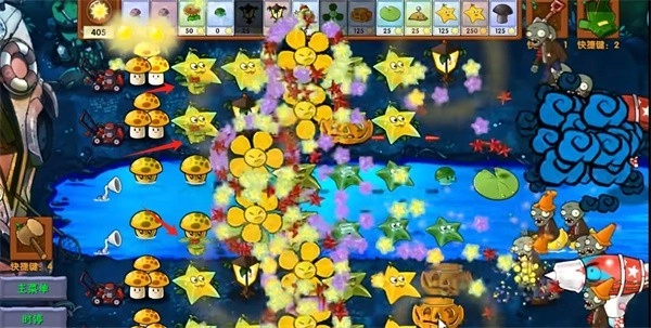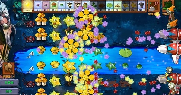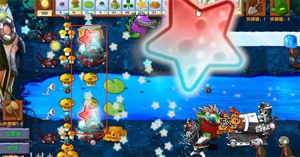 每隔一段时间会生成一颗大星星,它会朝着僵尸的方向坠落,随后分裂成几十颗小星星发起攻击。