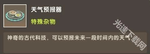 天气预报装置:位于神庙最顶端的房间里,使用石镐能够将其采集下来,放置好之后,借助上面的图案就能精准预报未来的天气。