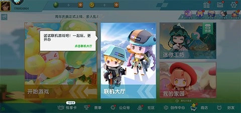 进入游戏大厅后,有四种游戏模式可供选择,分别是自建房间、联机玩法、迷你工坊和我的家园。
