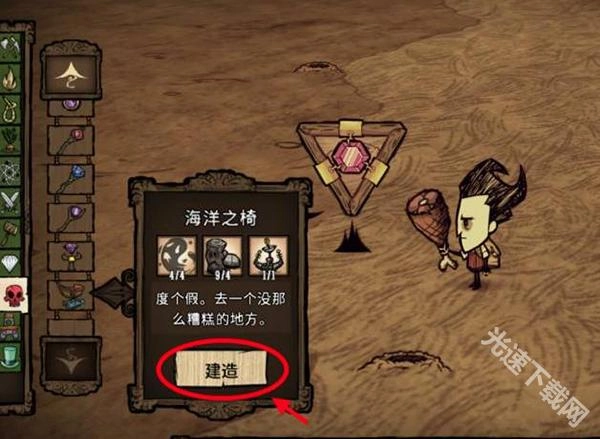 制作三个科技道具,即灵子分解器,接着在魔法栏里找到海洋之椅并解锁其制作配方。海洋之椅的制作条件为:海洋之宝1个、活木4个、噩梦燃料4个。