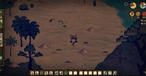 先来给大家科普一下饥荒里的螃蟹。在饥荒的其他版本中是没有螃蟹这种生物的。螃蟹只会出现在沙滩区域,也就是游戏初期那种淡黄色的地形上。