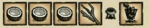 有一种低成本的回血食物,只需三个水果加一根树枝就能制作。这里的水果不局限于椰子,香蕉、石榴、西瓜都可以替代,唯独浆果不行。要是没食物了,吃它勉强能撑过去。海难场景里的食物,大多都带有回血的效果。