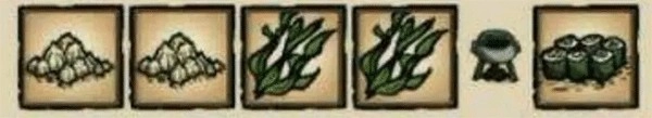 制作所需的材料组合很灵活,既可以是四条鱼,也可以是四只帽贝,还能是三条鱼搭配一根树枝。要是没有肉类但有鱼的话,就可以用这些材料来制作食物;不过如果有海带的话,用来做加州卷会更实惠一些。