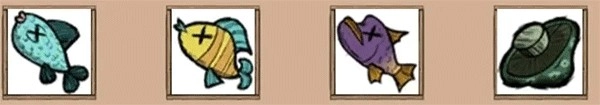 材料有两个鱼、一块冰和一根树枝,这些东西没多大用处,不过是些能当零食吃的玩意儿。