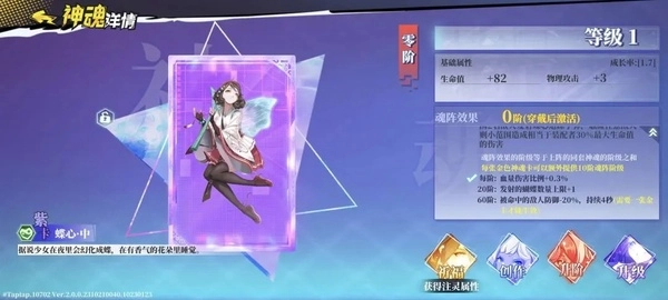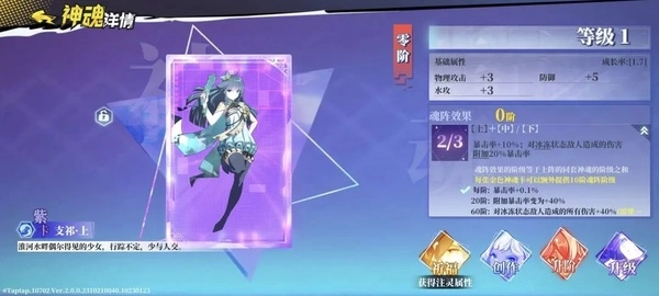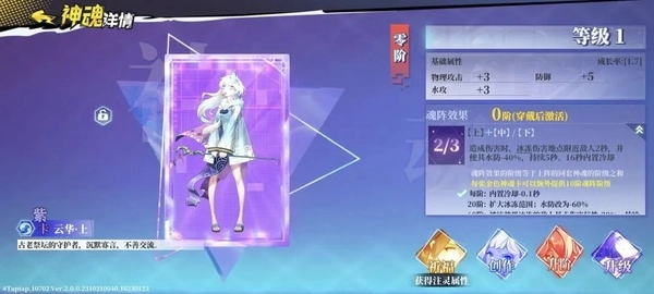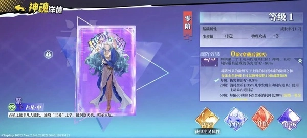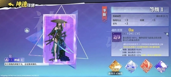若紫色、金色神魂储备充足,可考虑进行神魂注灵(该操作会生成一条属性,但性价比相对较低,属于资源充裕时再推进的项目)。最右侧的神魂升级选项则非常不建议选择。