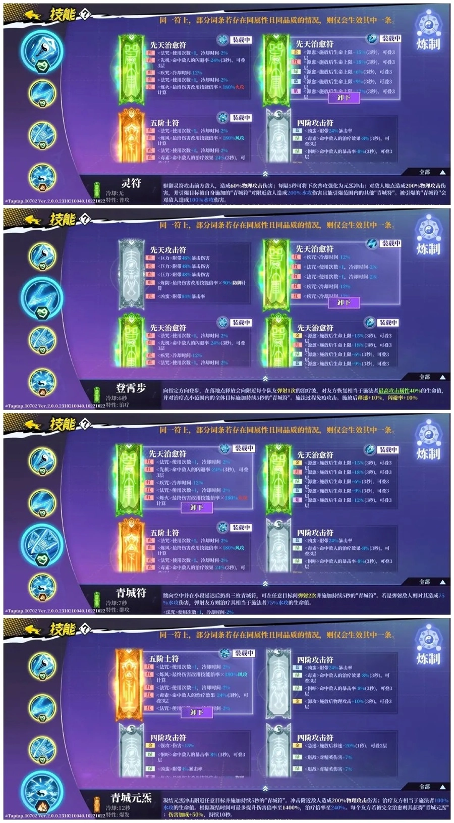 围绕紫卡神魂,我在这儿给萌新推荐3个流派:炼防、愈伤和炼水。