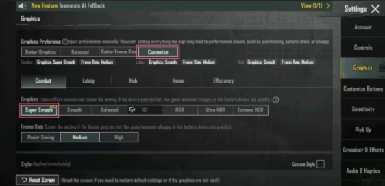 方式1:进入【设置】页面,找到【画面】选项,在画面偏好设置里选择【自定义】模式,接着在【画面品质】的选项中选择【超流畅】。