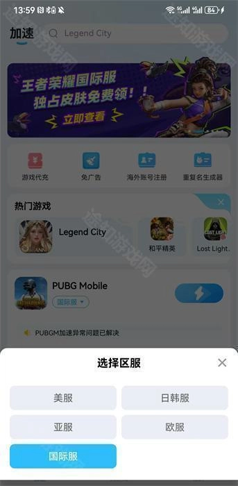 首先得准备一个加速器,接着在加速器界面选择【日韩服】,由于锁区情况比较严重,选择亚服的话体验会差一些,所以不选亚服会更好。