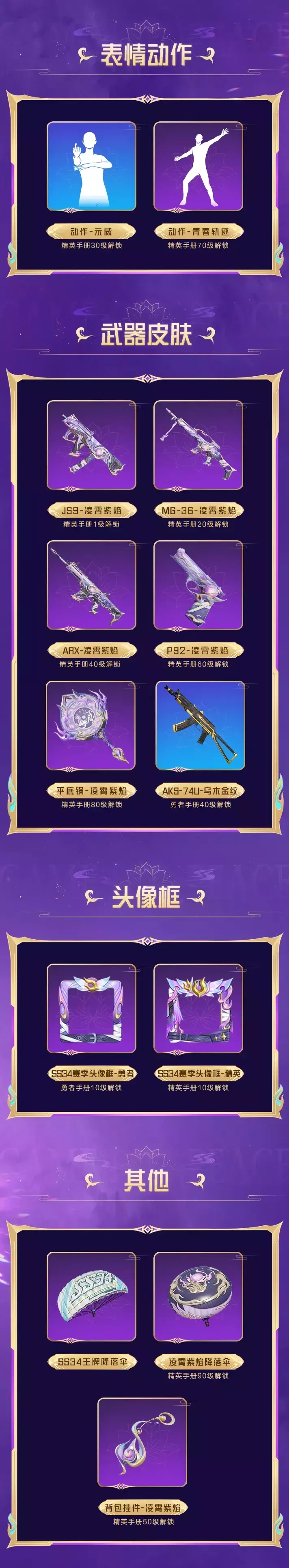 SS34赛季里,特种兵们能领到全新的赛季手册。大家可以通过完成赛季挑战、每周挑战以及日常活动来获取手册积分,用这些积分提升赛季手册的等级,而赛季手册升到相应等级时,就能解锁对应的奖励了。