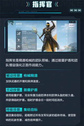 指挥官介绍:作为精通枪械的团队领袖,指挥官凭借能量护盾与团队增益,显著强化了自身及团队的正面作战能力。