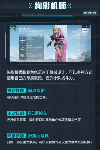 绚彩机师这一职业角色醉心于机械设计,能通过多种途径运用自己的专属载具,助力小队战斗力的提升。