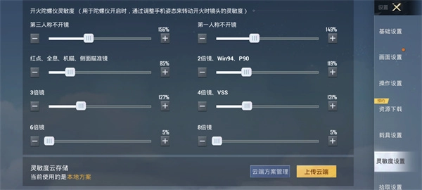 最后在自由镜头灵敏度、镜头灵敏度、开火灵敏度、陀螺仪灵敏度、开火陀螺仪灵敏度这几项设置里找到开火灵敏度,其中包含了所有倍镜的灵敏度调节选项。适当提高该灵敏度有助于更顺畅地压枪,但同时也需要结合自由镜头灵敏度一同调整——自由镜头灵敏度主要用于控制枪械的跟枪速度。