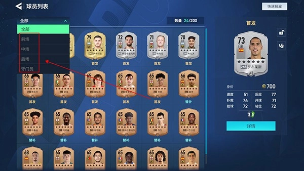 游戏里的球员被划分为前场、中场、后场和守门员这四类,每类球员都有着不一样的功能,玩家能够自行进行搭配组合。