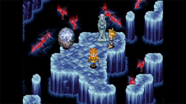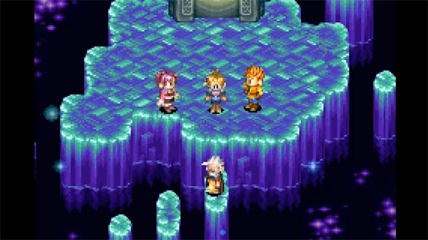 黄金太阳系列里的魔法被称作精神力,这种能力既可以在迷宫场景中运用,也能在战斗过程中施展。图中展示的正是在迷宫里运用冰冻精神力,将地面上的水凝结成冰柱的画面。