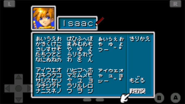 选择“开始新游戏(はじめる)”选项,就能进入为主人公取名的环节,系统默认的名字是“罗宾(ロビン)”。要是想换取名的字符类型,点击“切换(きりかえ)”就能在平假名、片假名、英文和数字之间来回切换,方便给主角起一个响亮的名字;如果输入时出现多余的字母,选“消除(もどる)”就能删掉;一切准备好后,选择“结束(おわる)”就可以直接进入游戏啦。
