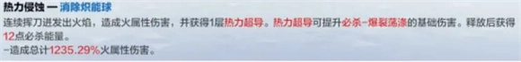 特殊球的携带上限为三颗,既能够单个释放,也可以连续释放。对于特殊球而言,除了具备输出能力外,其最关键的作用在于为二段大招叠加层数以提升伤害——每消除一次特殊球就能叠加一层增伤效果,每层可增加50%的基础伤害,普通状态下上限为三层(SSS阶时上限提升至六层)。所以渡边在进行循环输出的过程中,要尽量完成3次炽能球的释放操作。