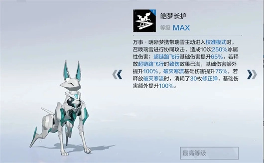 专属辅助机: 所有专属辅助机的多数技能大体采用相同的数值模板,区别主要在于专属被动。当2S明晰梦装配意识【利斯顿】时,辅助机的专属被动【皑梦长护】对子弹的伤害提升约54%;而对于3S明晰梦,该数值约为45%。