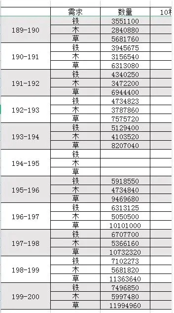 200级灵阵所需最低洞府:木183,草187,铁185。下图是189到200级灵阵各级所需具体数目,抱歉漏了一级,大家将就看