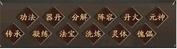 第三章:在自创宗门界面中,除了建筑相关的内容外,还有四个图标,它们分别对应着四项基础功能。