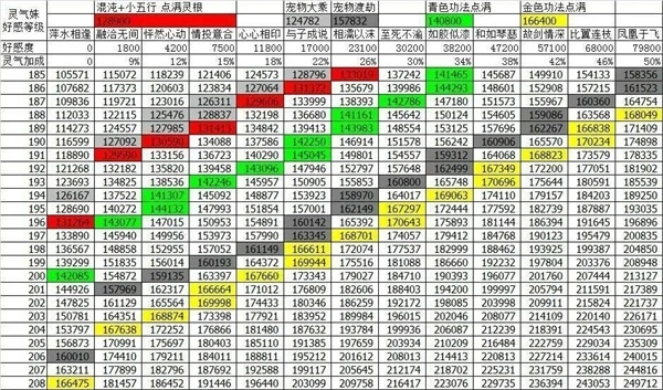 渡劫宠、散仙宠、游仙宠这三个等级的宠物所需初始灵气分别为157832、189600、222282,且均未受到其他效果的减幅影响。