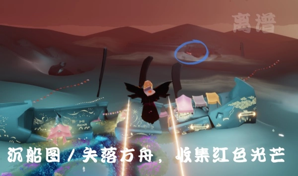 红色光芒可以在两个地方收集到,一处是墓土的沉船图,另一处是失落方舟后方山洞的前方。