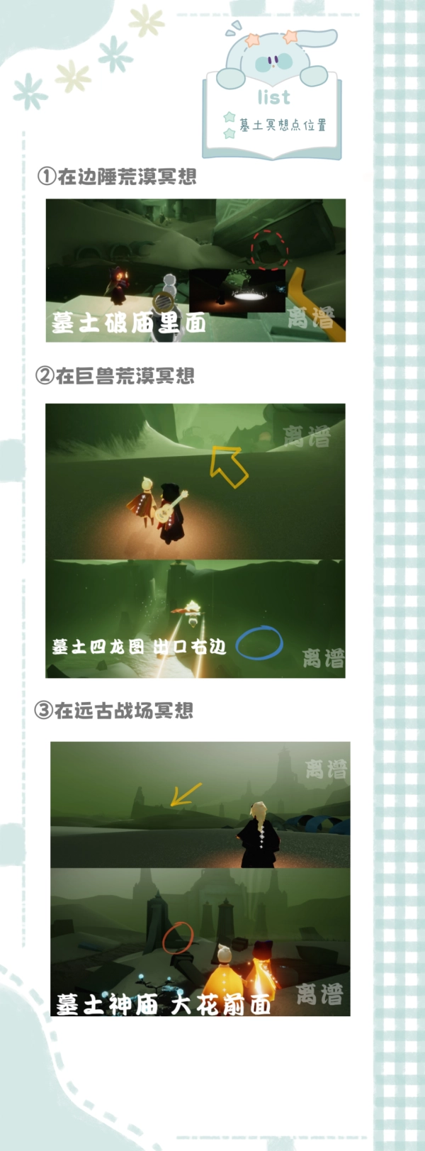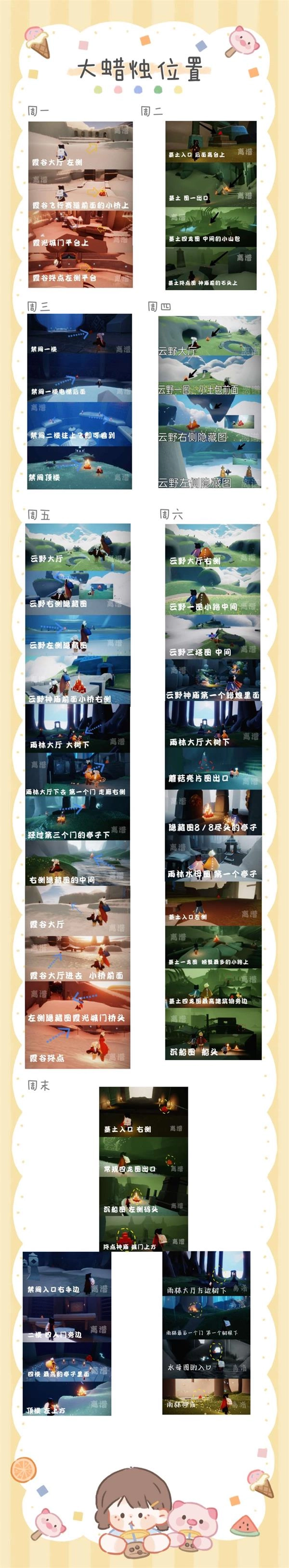光遇里大蜡烛每天的刷新位置是有规律可循的,各位光崽可以参考下面的图片哦~
