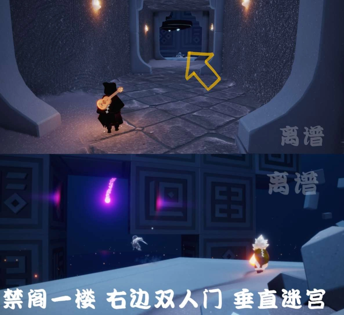 紫色光芒在禁阁的垂直迷宫里,具体位置是禁阁入口右侧的台子上,你需要打开双人门,进去后往右边看就能找到那道紫色光芒。