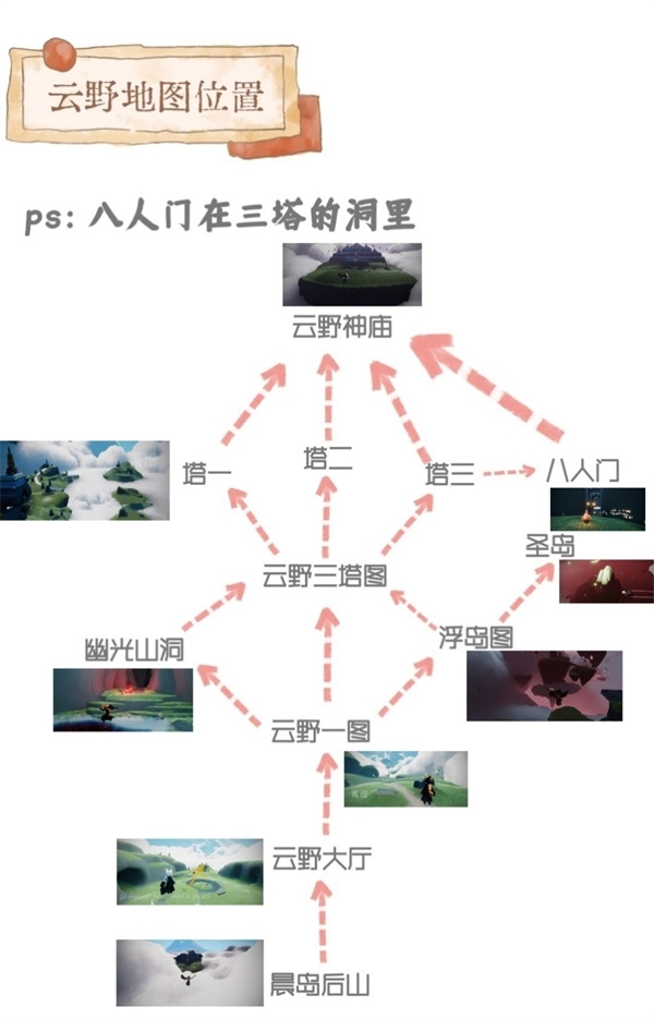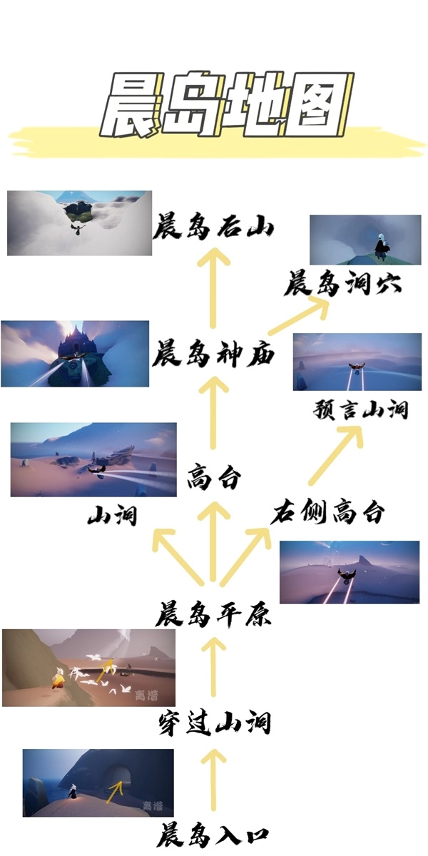 光遇是一款集治愈、社交与冒险元素于一体的游戏。截至目前,游戏内共有七个地图场景,包括弥漫着朦胧雾气的初始之地晨岛、充满生机绿意的云野、潮湿且植被繁茂的雨林、晚霞绚烂夺目的霞谷、氛围庄严肃穆的暮土、静谧而神圣的禁阁、设有各类商铺的百货小镇云巢,以及作为最终试炼的暴风眼。