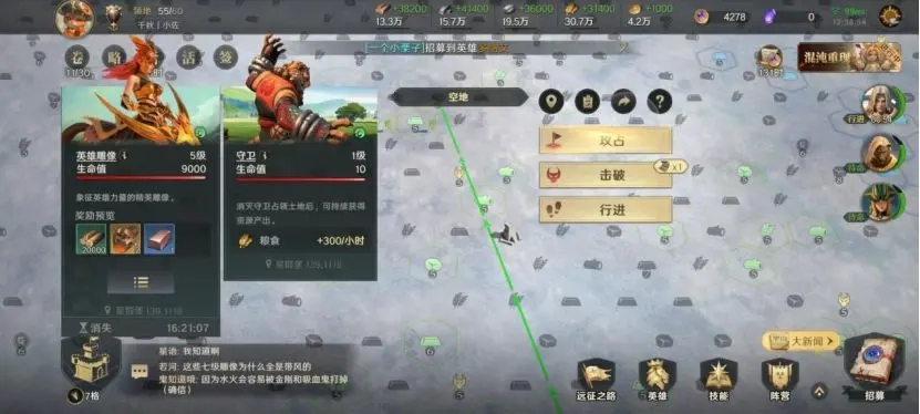 二、在达到20级之前,记得开启第三队,因为等你到20级时,系统会自动把所有队伍的兵力补满。这样一来,你就能带着二队和三队一起行动,前期开荒时兵力能多出12000,对开荒的帮助非常大。