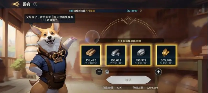 八、游商系统:在主城建筑中设有可开启的游商功能,该功能专为资源交换而设计。若你缺少某类资源,可通过打开游商进行资源互换。