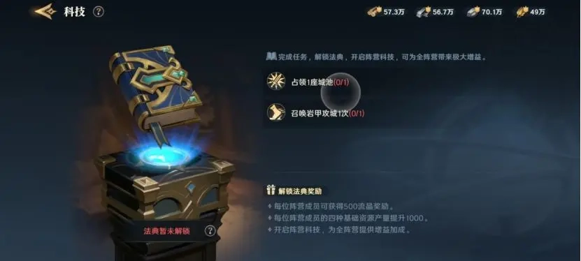 六、游戏内各角色的攻城值初始相同,若要提升攻城值,可通过阵营科技中专门针对攻城值的科技进行升级。