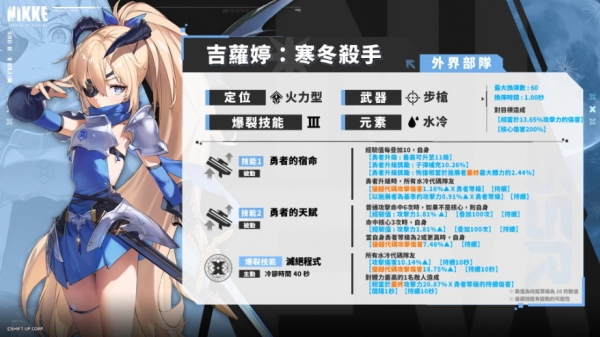 提升冒险等级能够逐步增强吉萝婷:赛冬杀手以及水冷代码队友的能力。而发动普通攻击时获取的经验值,可以用来提升冒险等级。