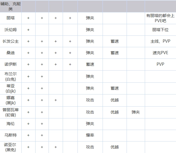 、本表截止于二周年版本,最新角色格拉维。