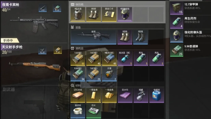 装备投保可避免丢失;保险箱内物资无论胜负均带出