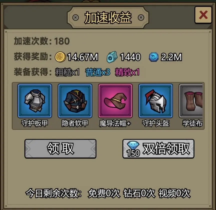 加速收益是获取定向装备的核心途径。这里再给大家明确一下装备产出的关卡节点:通关400关可获得金色优秀装备,550关解锁橙色上乘装备,700关能拿到红色完美装备,850关则会产出红色极品装备。特别感谢策划保留了通过加速收益刷装备的机制——在加速收益界面中,如果遇到不想要的装备,只需先退出界面再重新进入,里面的装备就会刷新。大家可以反复操作这个方法,让自己始终拥有最优质的装备配置。