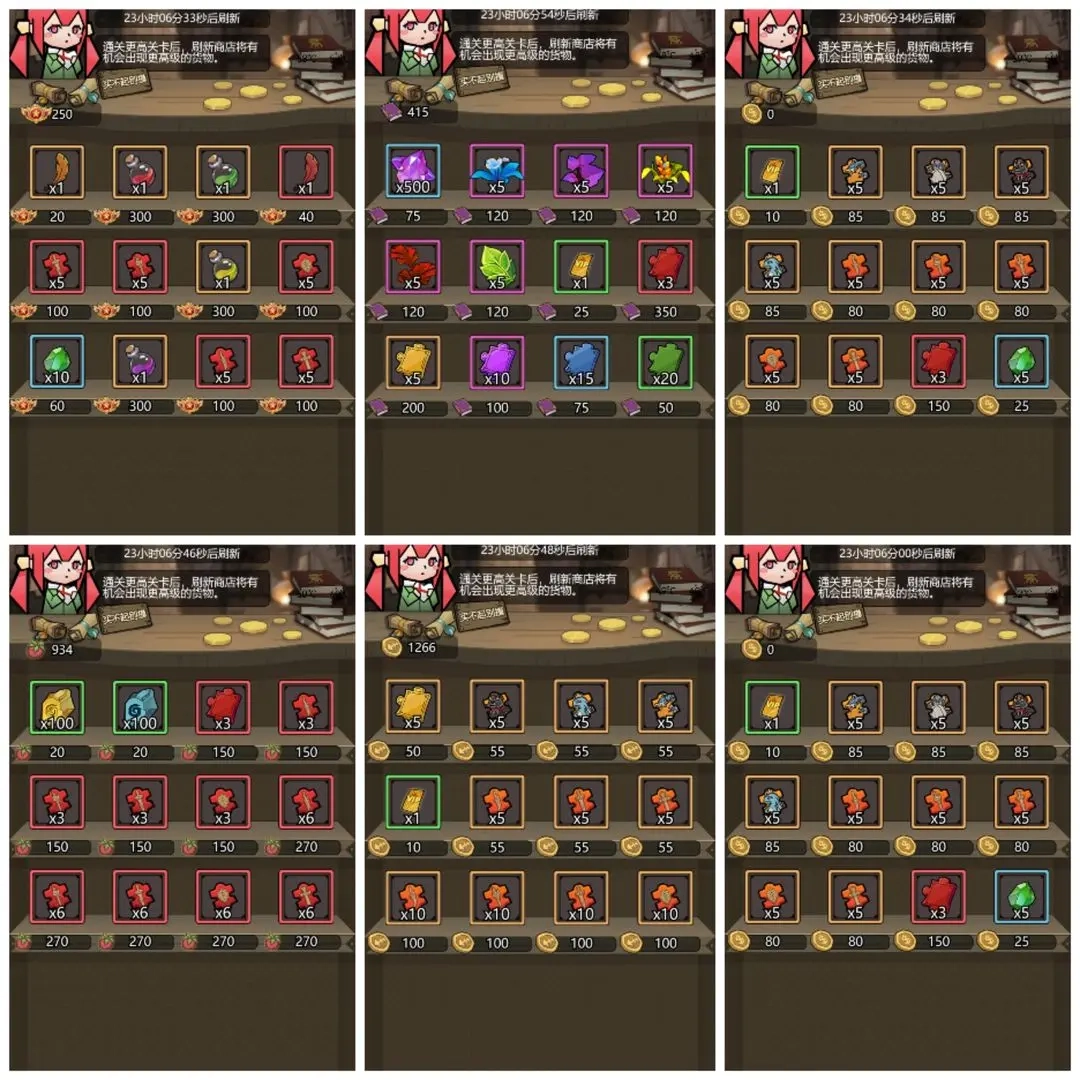 道具商店每天有几次刷新机会,其中打折的至尊箱子、普通箱子以及所有招募券是必买项。至于看广告得100钻石的选项,就看个人意愿了,我反正没兴趣看。商店里除箱子外的物品购买优先级如下:神话碎片(若条件允许建议每日买满)>VIP券(买完神话碎片还有余力再考虑)>前期的矮人传说碎片/后期的魔墩墩传说碎片。像稀有碎片、金币、经验包、装备这类物品,则完全没必要购买。