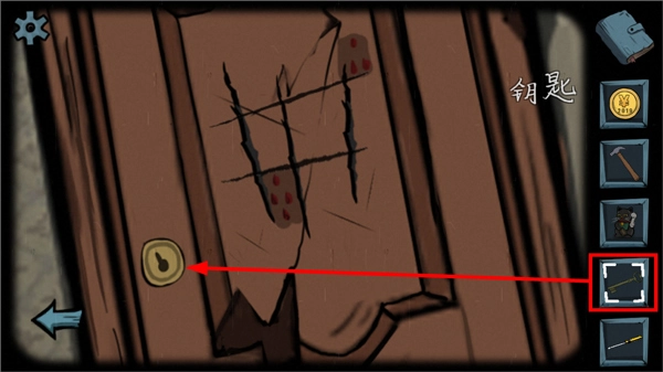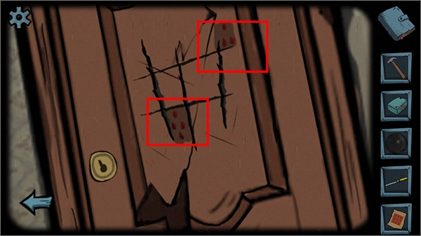 然后点击楼梯,接着点击左侧的按钮,前往左边的房门,并且记住门上的图案。